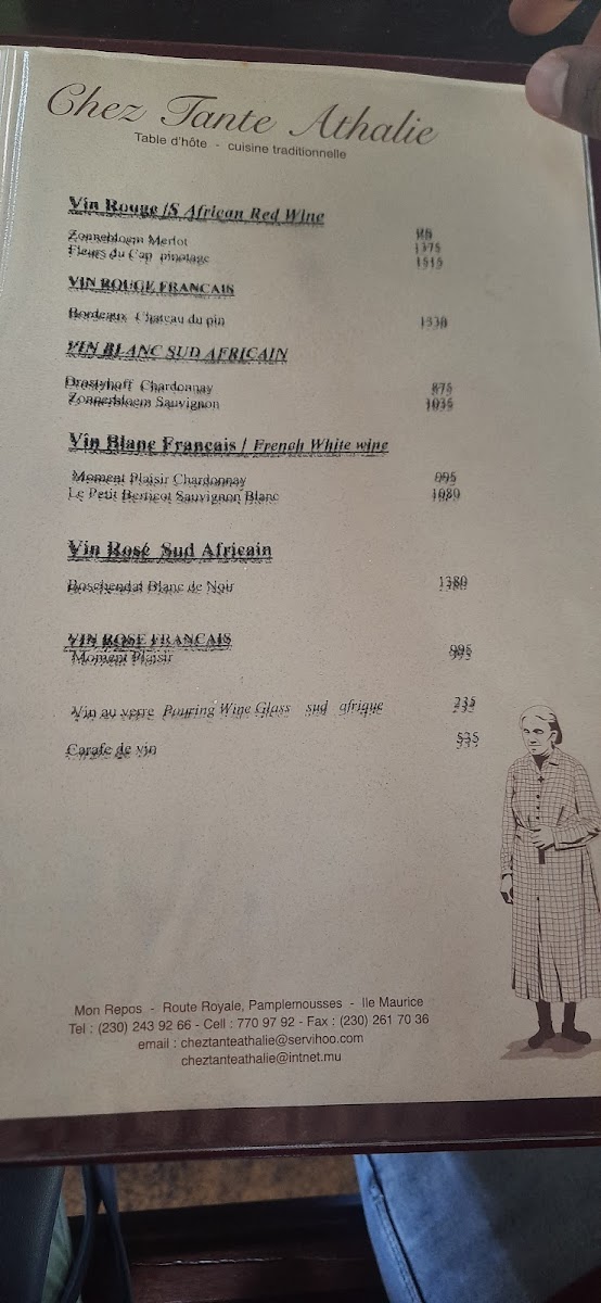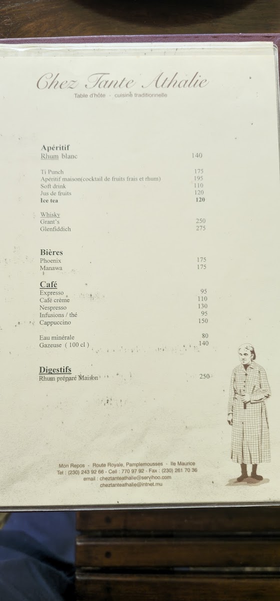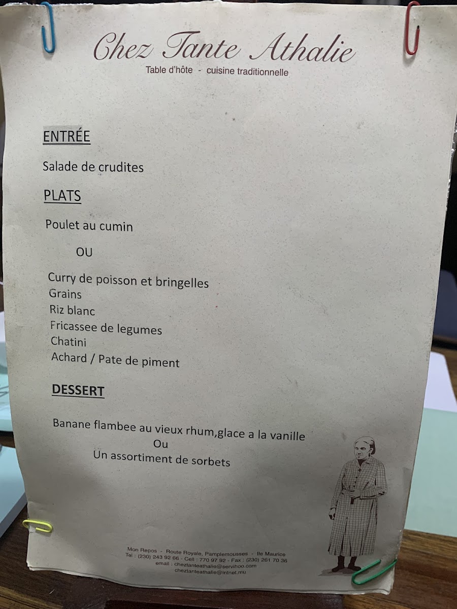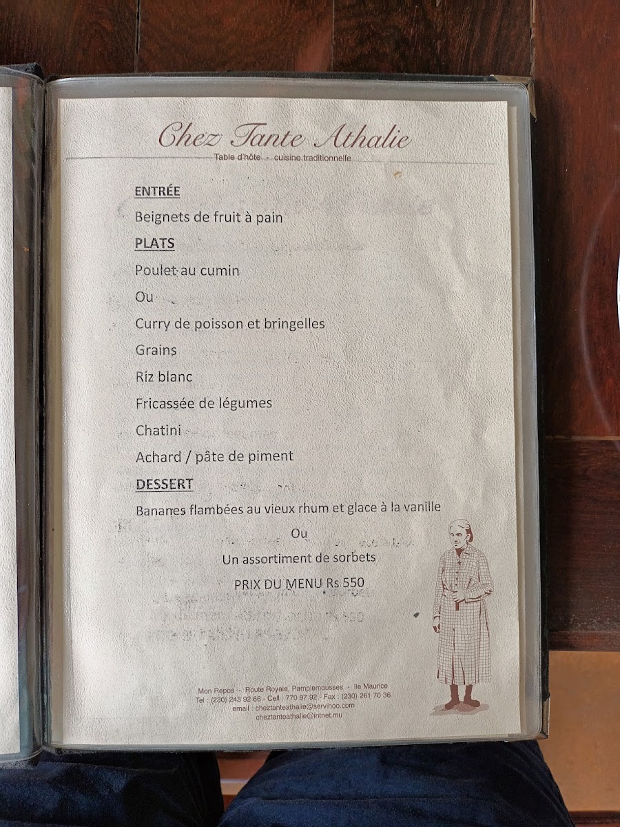 Chez Tante Athalie - Table d'hôte Menu