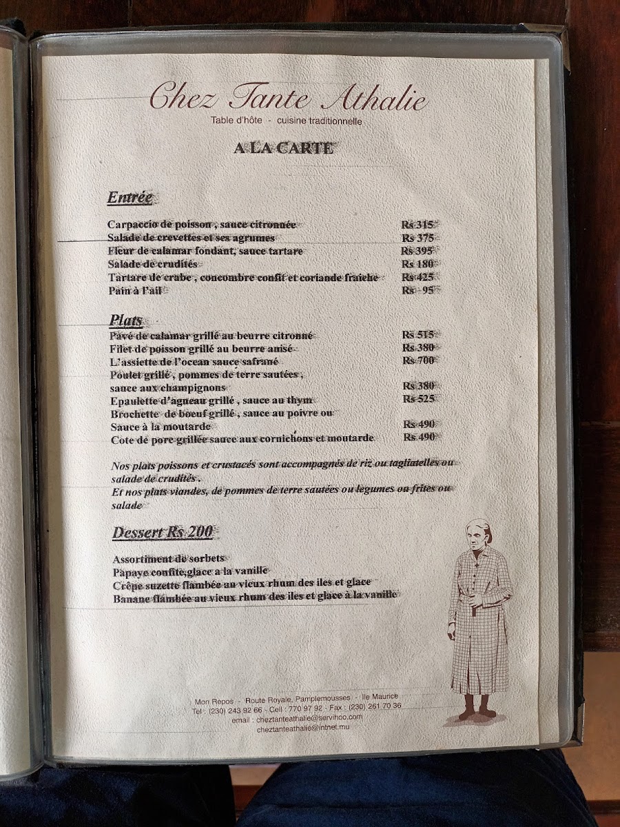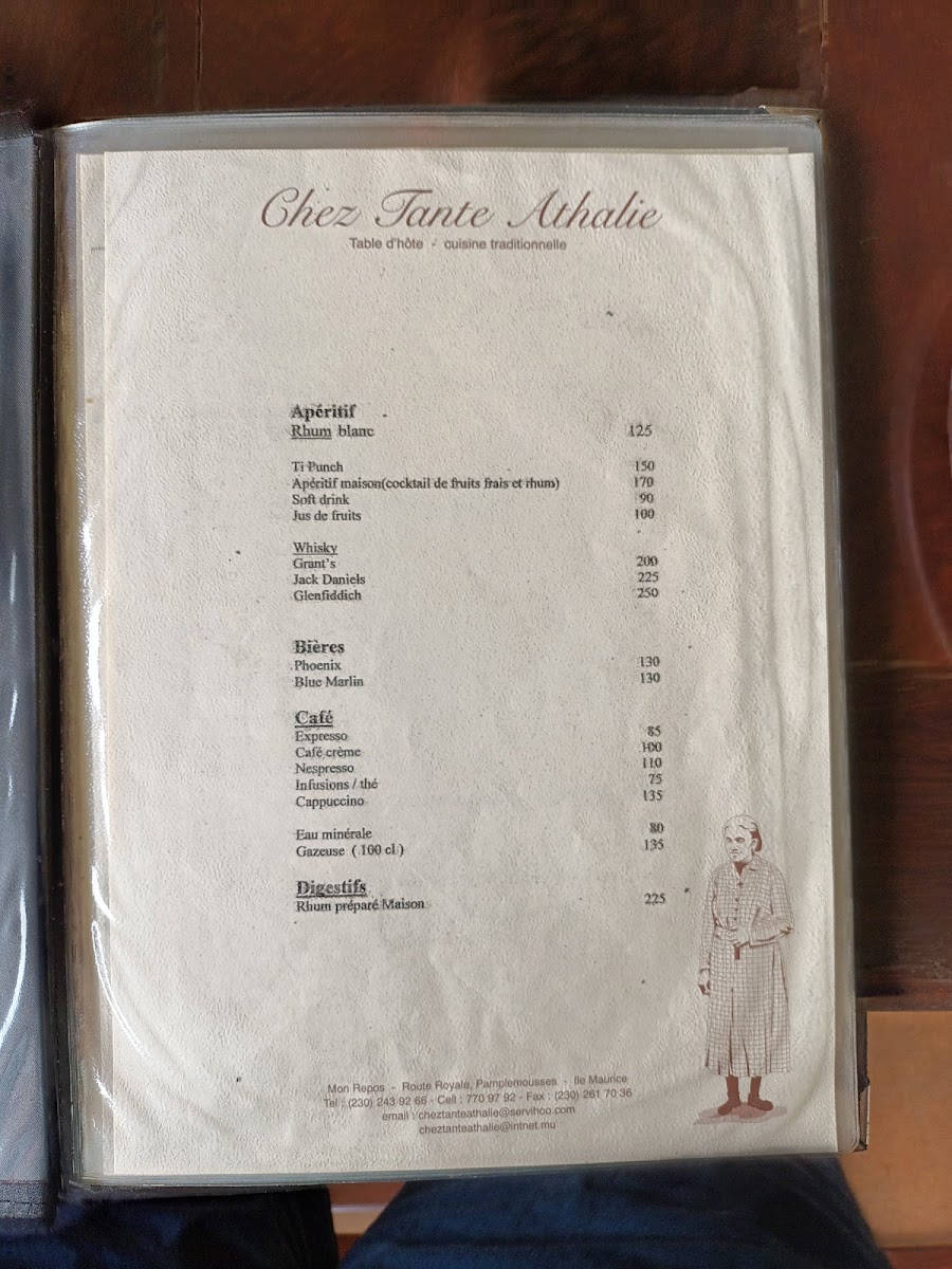 Chez Tante Athalie’s menu offers a taste of Mauritius through thoughtfully prepared dishes that blend traditional flavors with a warm, inviting ambiance. It’s a place where you can enjoy a leisurely meal, whether for lunch or dinner, crafted around a comforting table d'hôte style that encourages sharing and savoring local specialties.